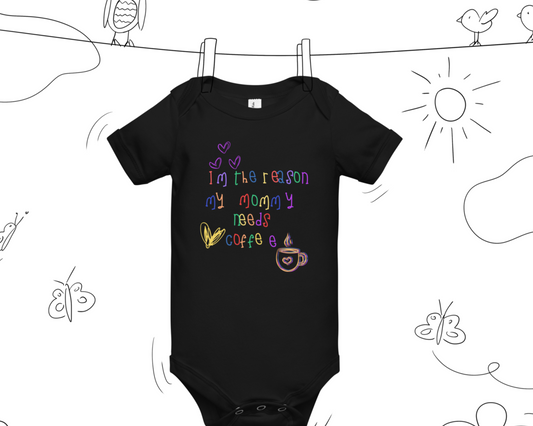 The Reason Mommy Needs Coffee" Short Sleeve Baby One Piece