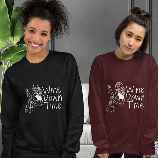 Wine Down Time Comfort Sweatshirt - Black or Burgundy