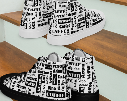 Women’s High Top Black/White "Wine Water Coffee" Canvas Shoes